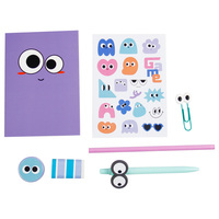 Set di cancelleria a tema Monster Eye: matita divertente e carina, gomma, adesivi e accessori dai colori vivaci