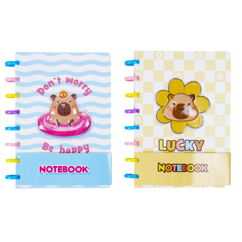 Capybara xoắn ốc máy tính xách tay A5, dễ thương PP Bìa discbound Tạp Chí với nấm khóa ràng buộc cho sinh viên, trường học, văn phòng phẩm